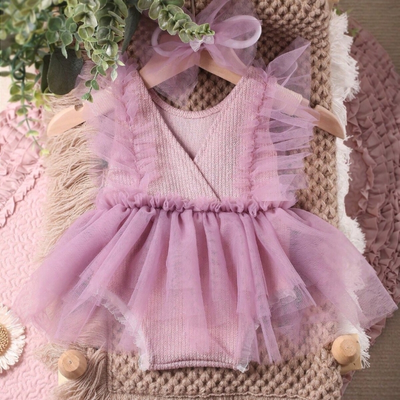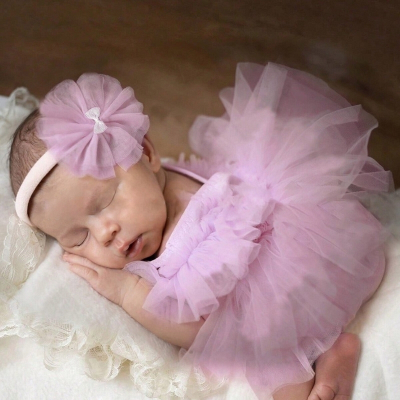 Designed for newborn baby girls and their stylish parents, this lace romper set is perfect for those who appreciate fashion and individuality. Whether its for a professional photoshoot or a family selfie, this outfit will make your little one the center of attention.