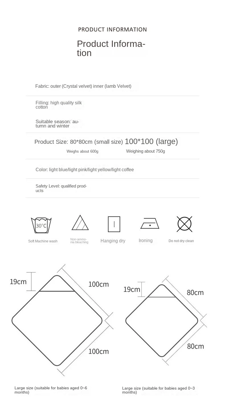 Baby Hugging Blanket, Thickened for Autumn and Winter, Newborn Baby Cape, Multifunctional, Outdoor Coral Velvet Blanket
