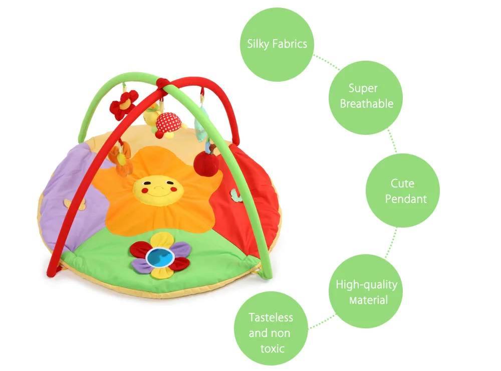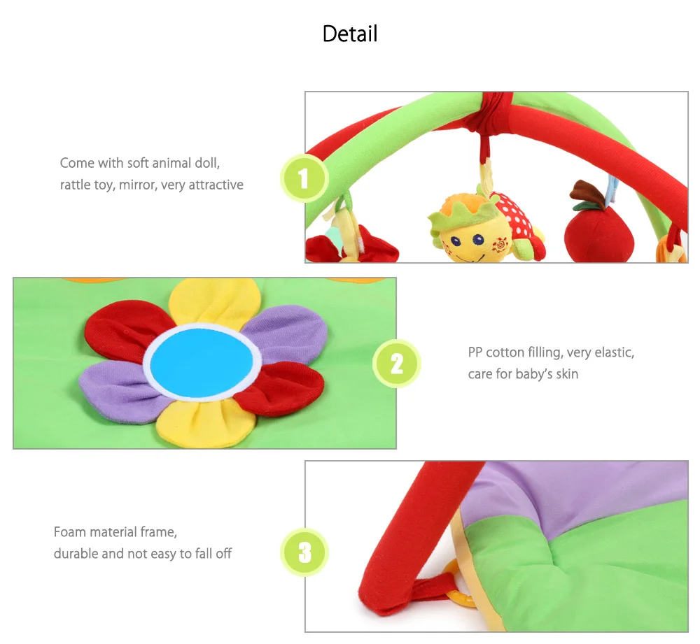 - A ringing pendant hung on the frame exercises your baby's tactile and hearing