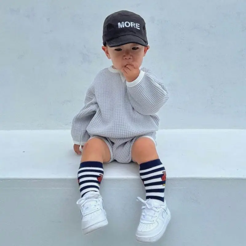 New Baby Waffle Sweatshirt Tops+Pants Suit Tracksuit