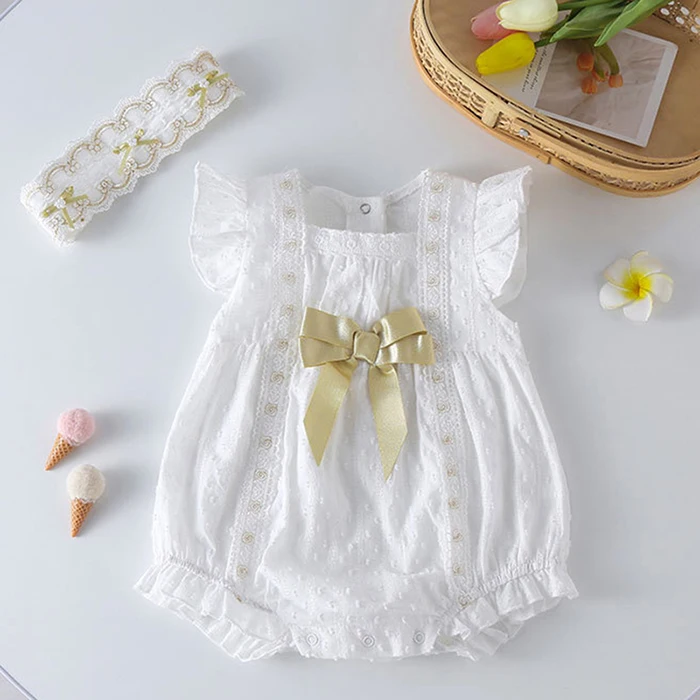 Newborn Baby Girls Bodysuits+Hair band Cotton Korean Style