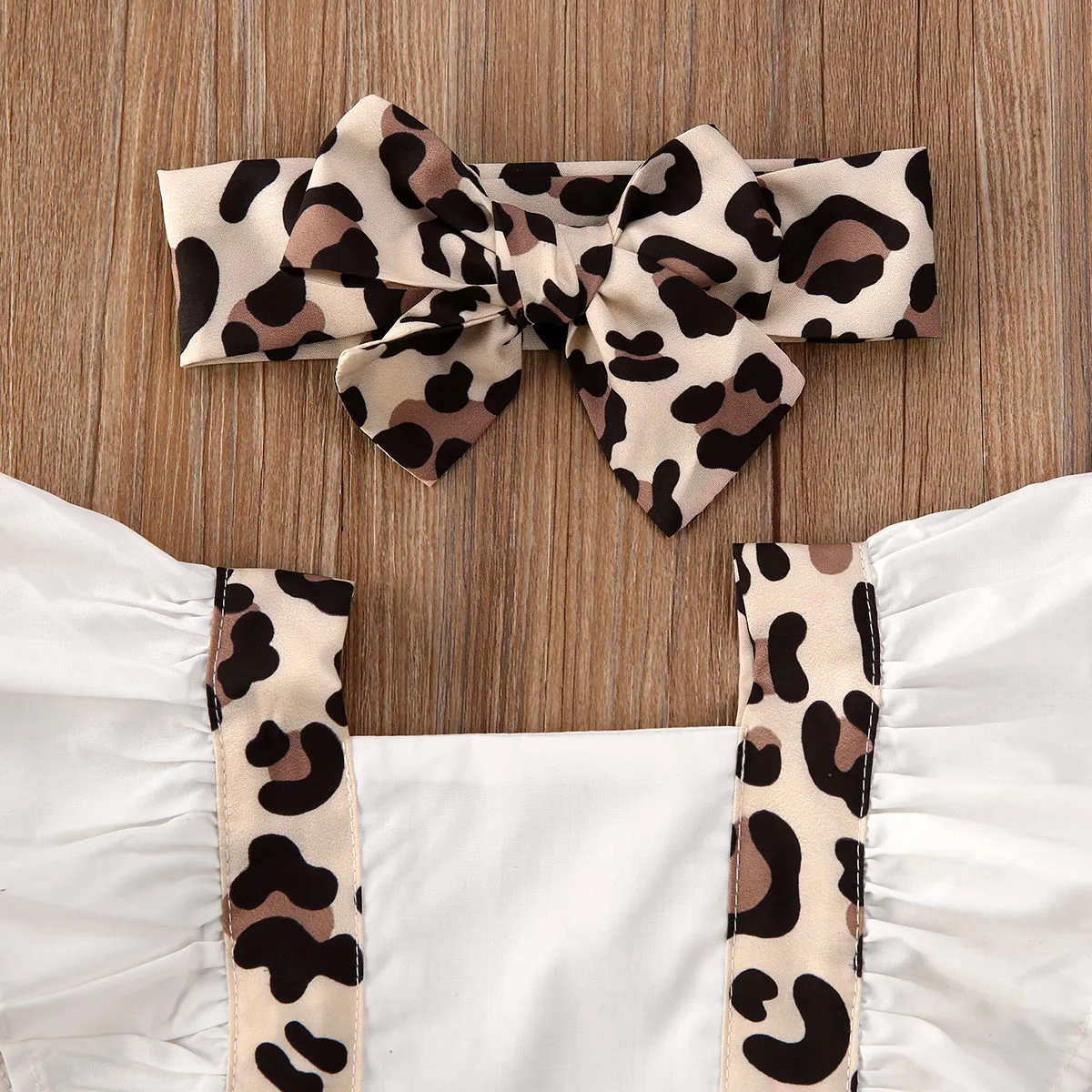 Newborn Leopard Print Ruffle Bow Headband Summer 2pcs Outfits