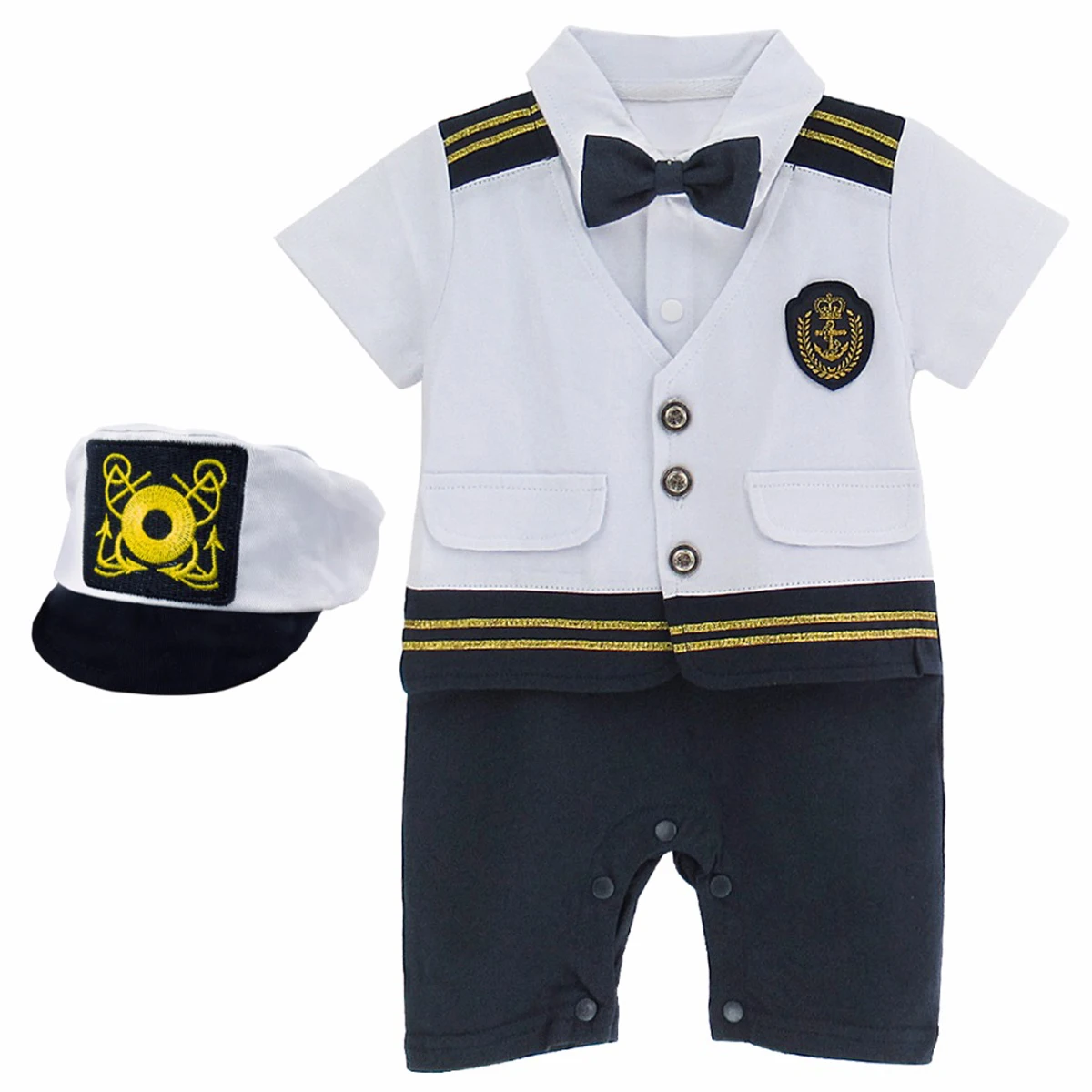 Baby Boys Captain Romper Costume Infant Set with Hats Shoes