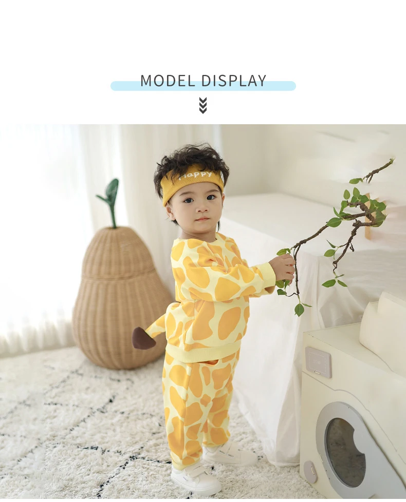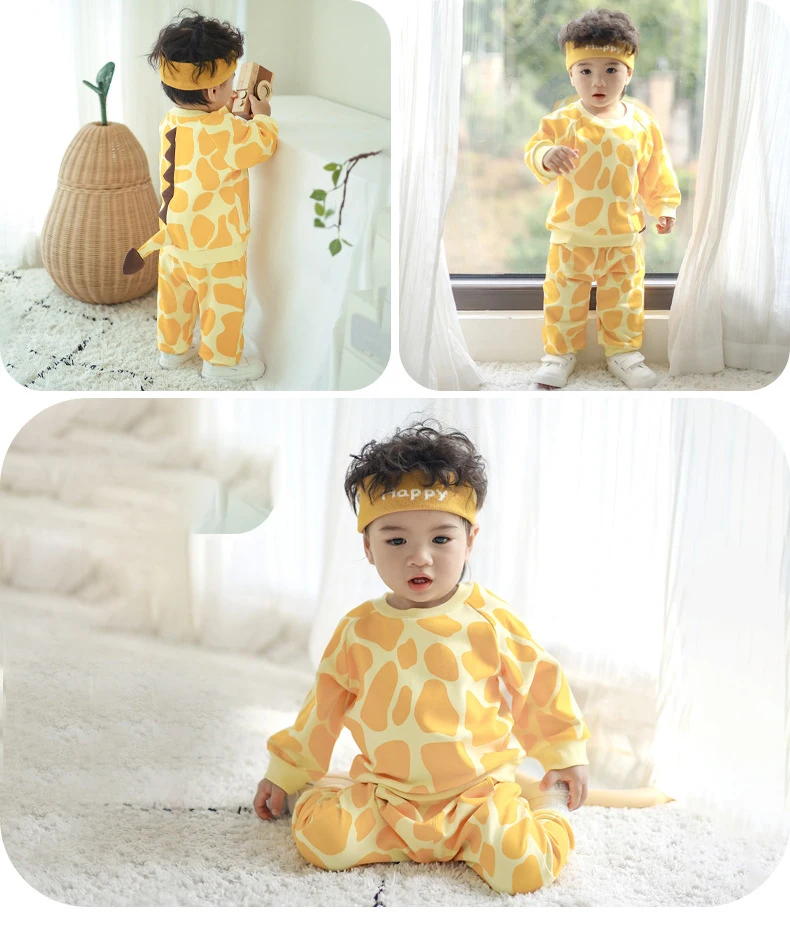 Lovely Giraffe Tops+Pants Two piece set Cotton Baby Custome