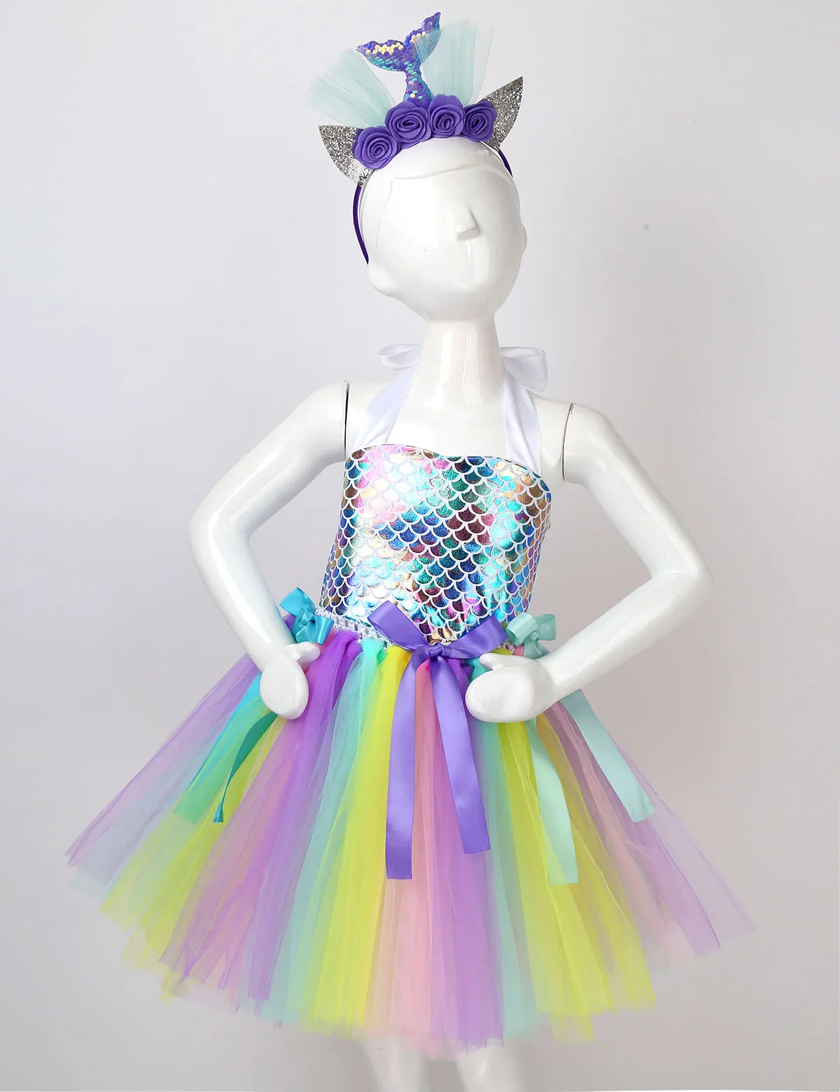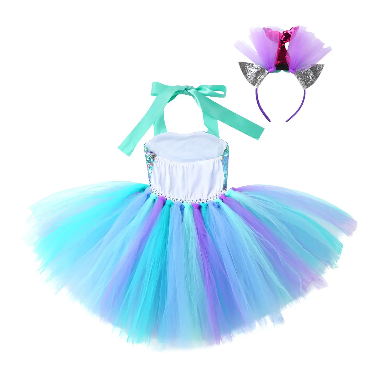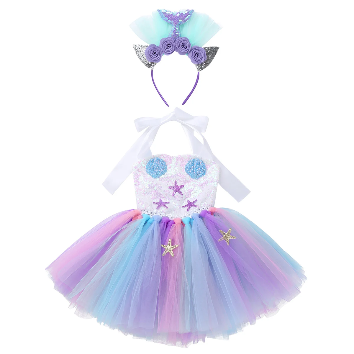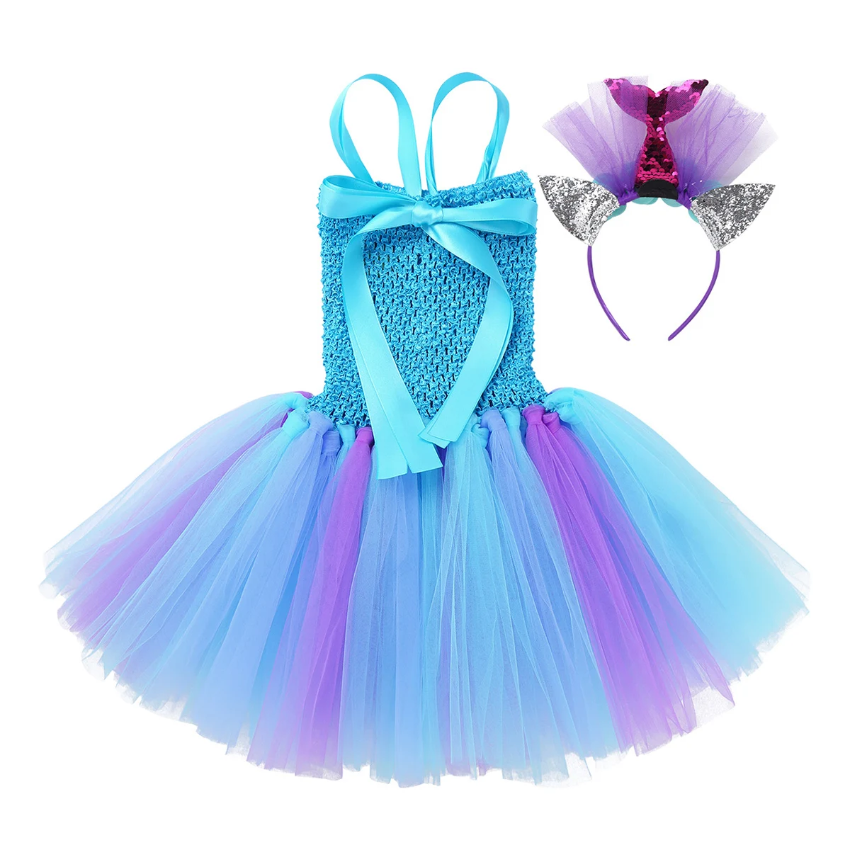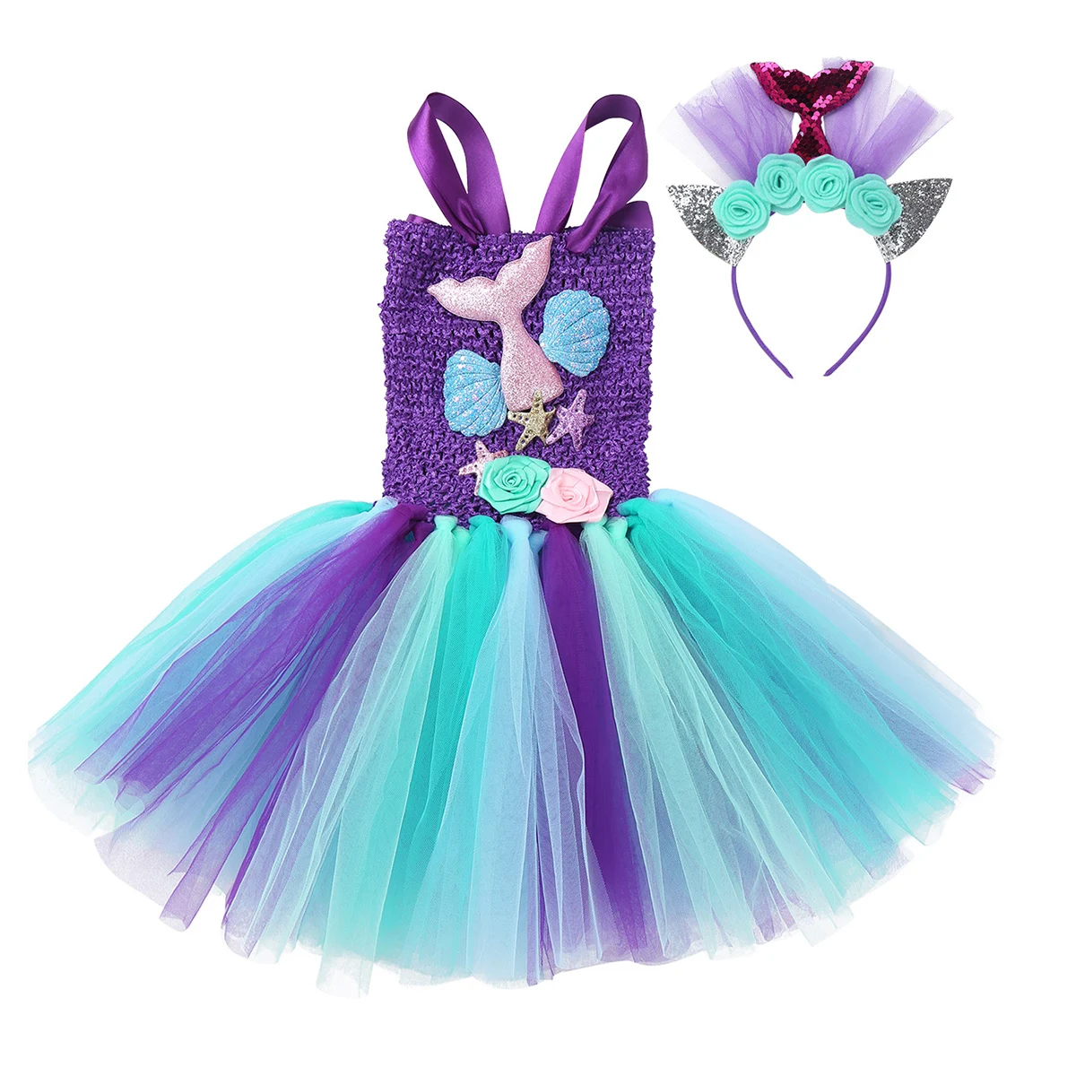 Princess Dress Up Mermaid Tulle Tutu Dresses With Headband