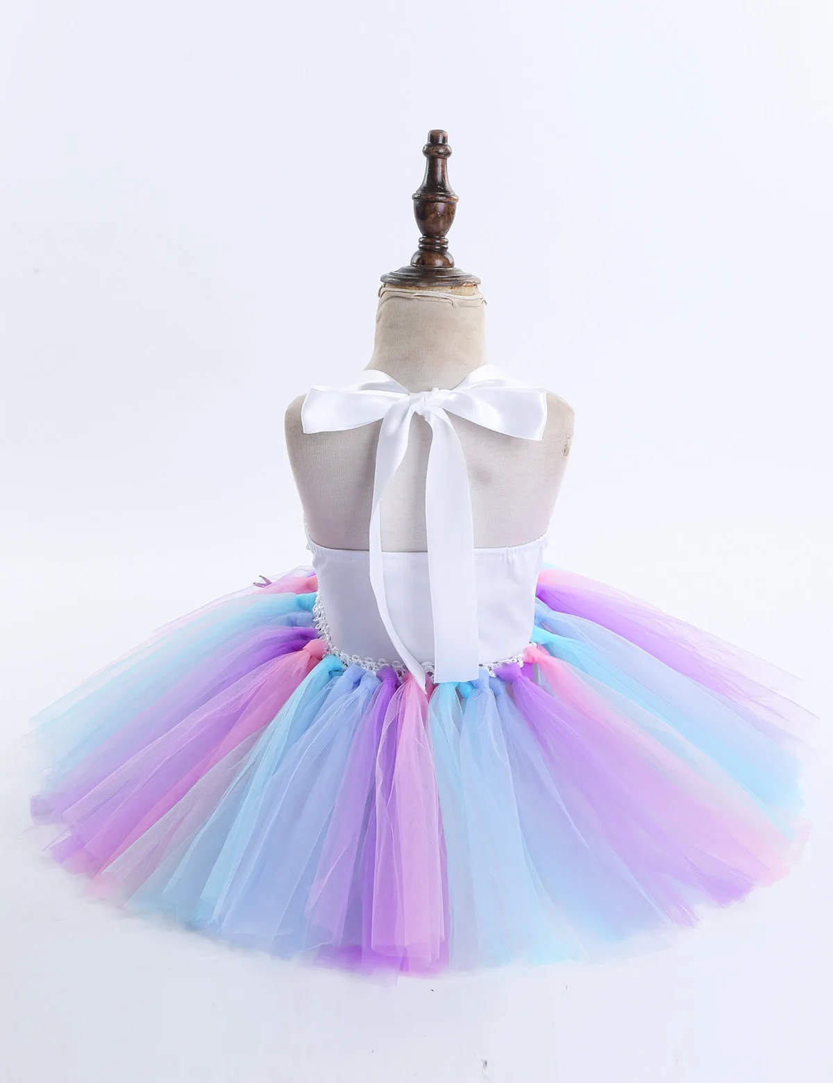 3D flowers on waist. 1 layer colorful mesh tutu dress attached to the waist. Comes with a matching hair hoop. Adorable and cute set for your girl.