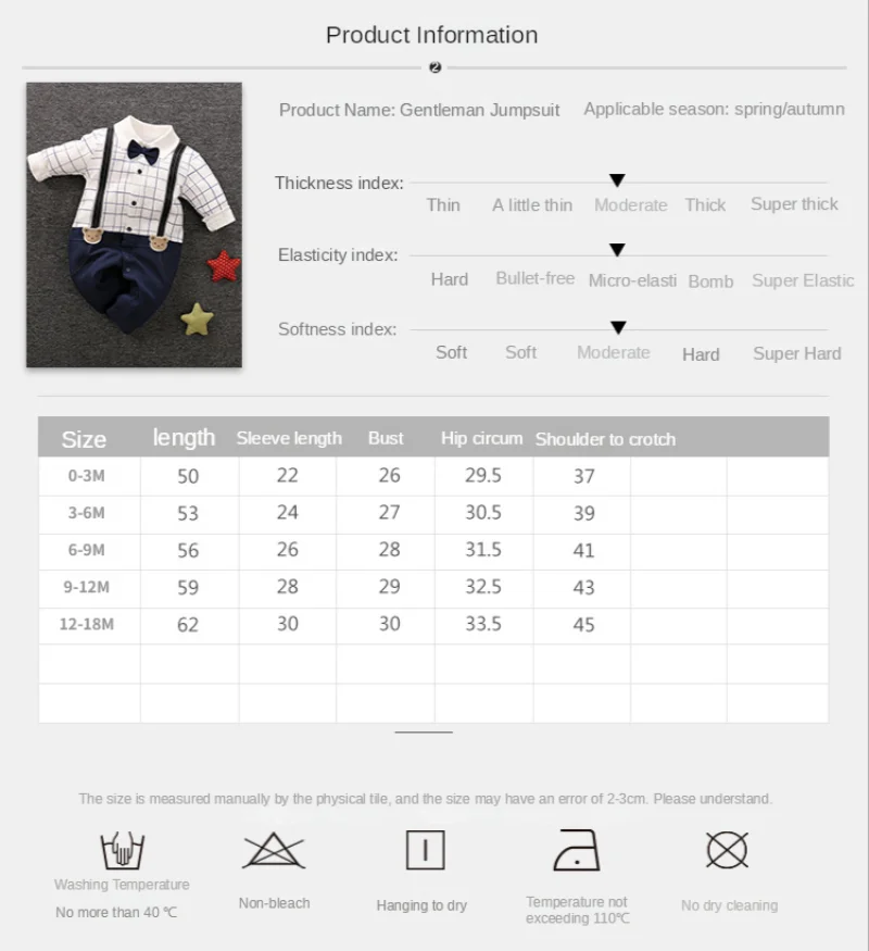 Cotton Baby Boys Romper Infant Gentleman Suit 0-12M