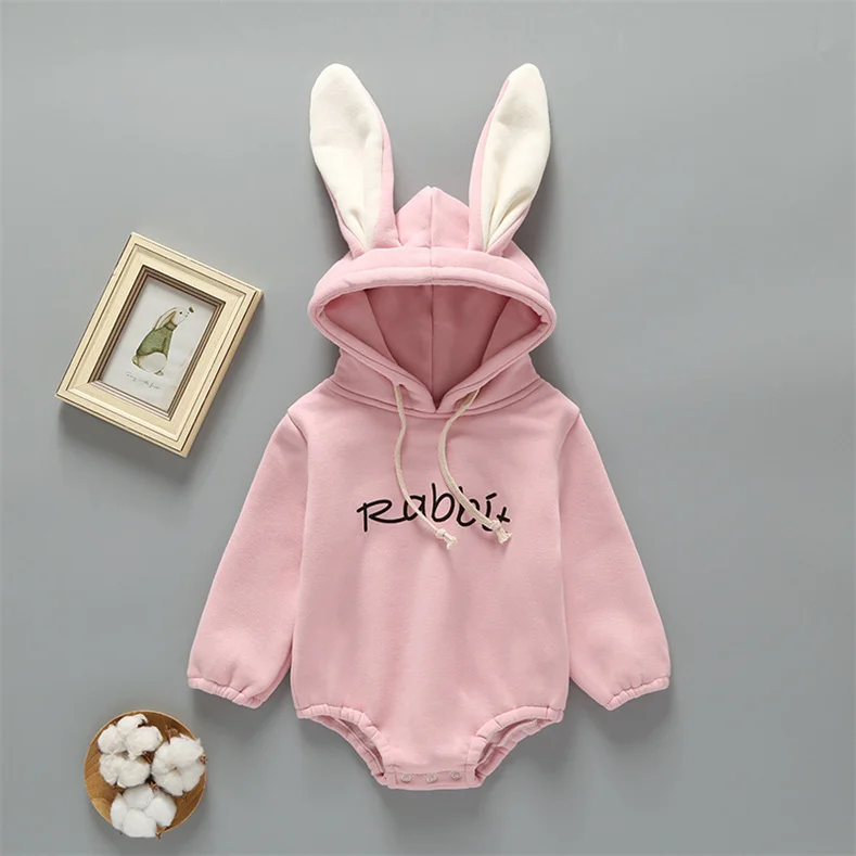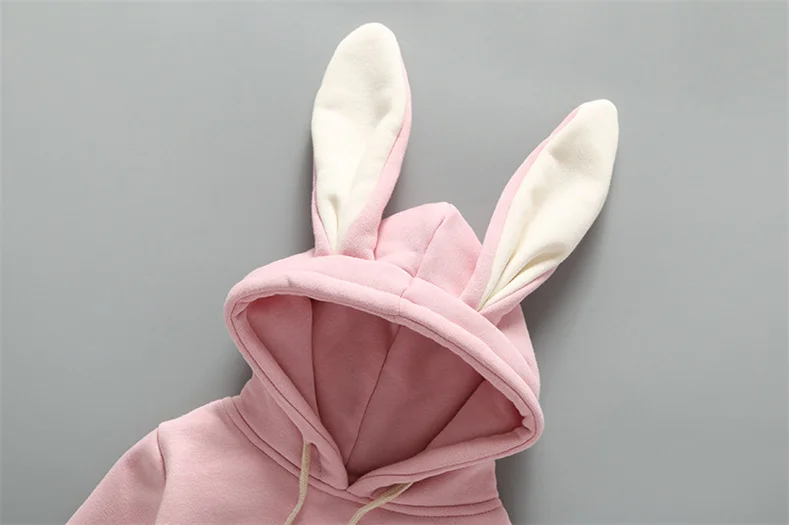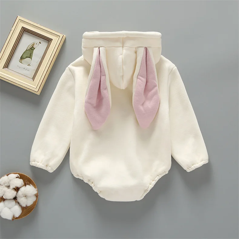 Newborn Baby Rabbit's Ears Hooded Wool Jumpsuit