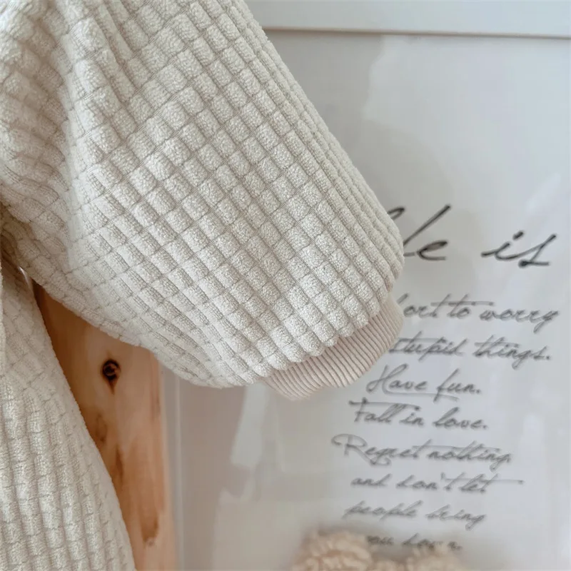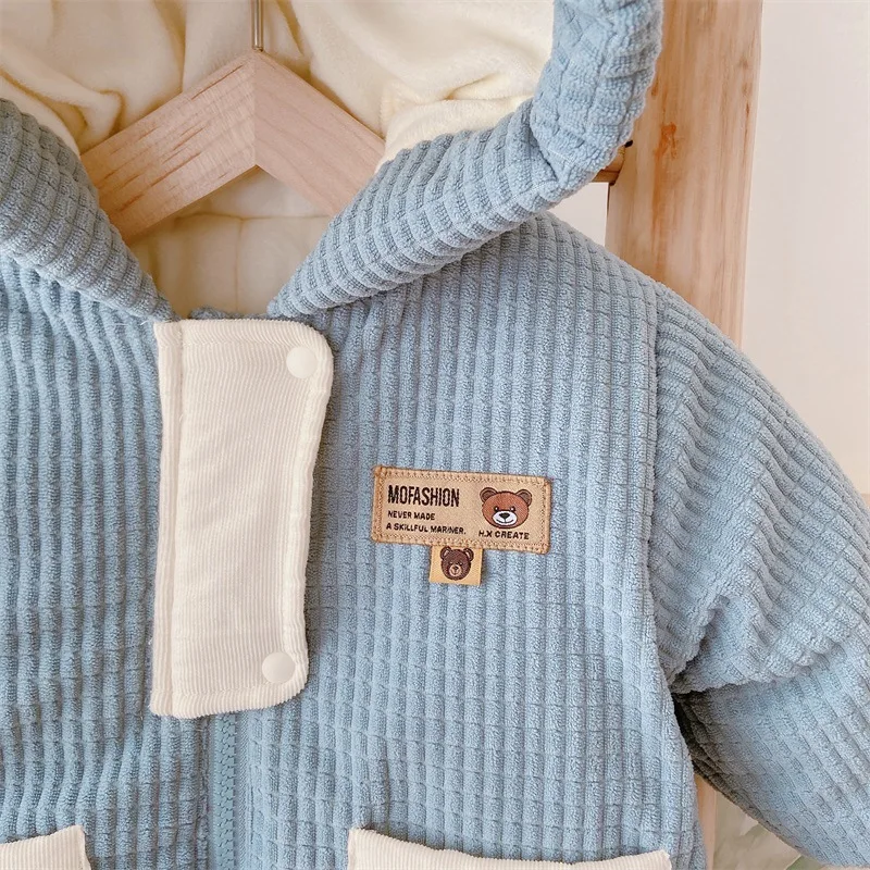 3. Thick and Plush Material: The jumpsuit is made with a thick and plush material that provides excellent warmth and comfort. The material is soft and comfortable to touch, making it extra cozy for little ones.
