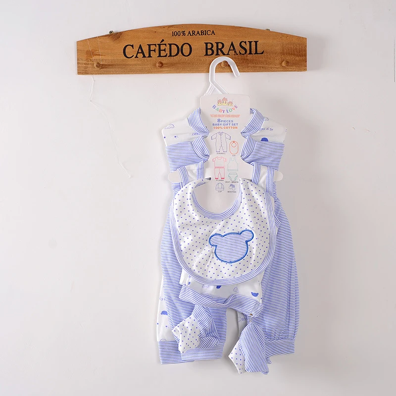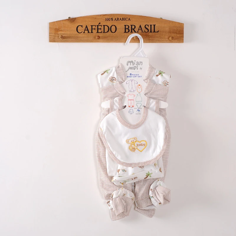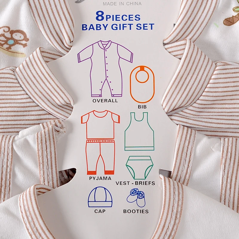 8Piece Newborn Baby Clothes Cotton Rompers+T-shirt+Pants+Hat Set