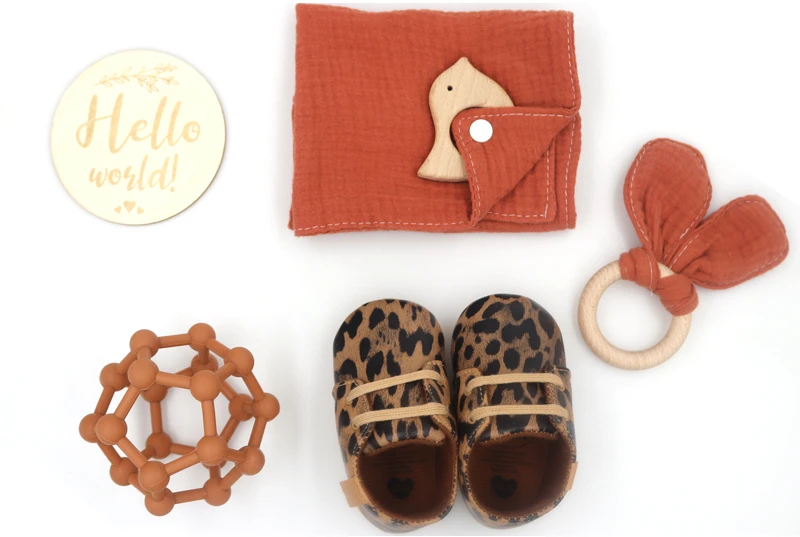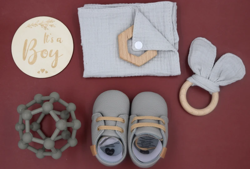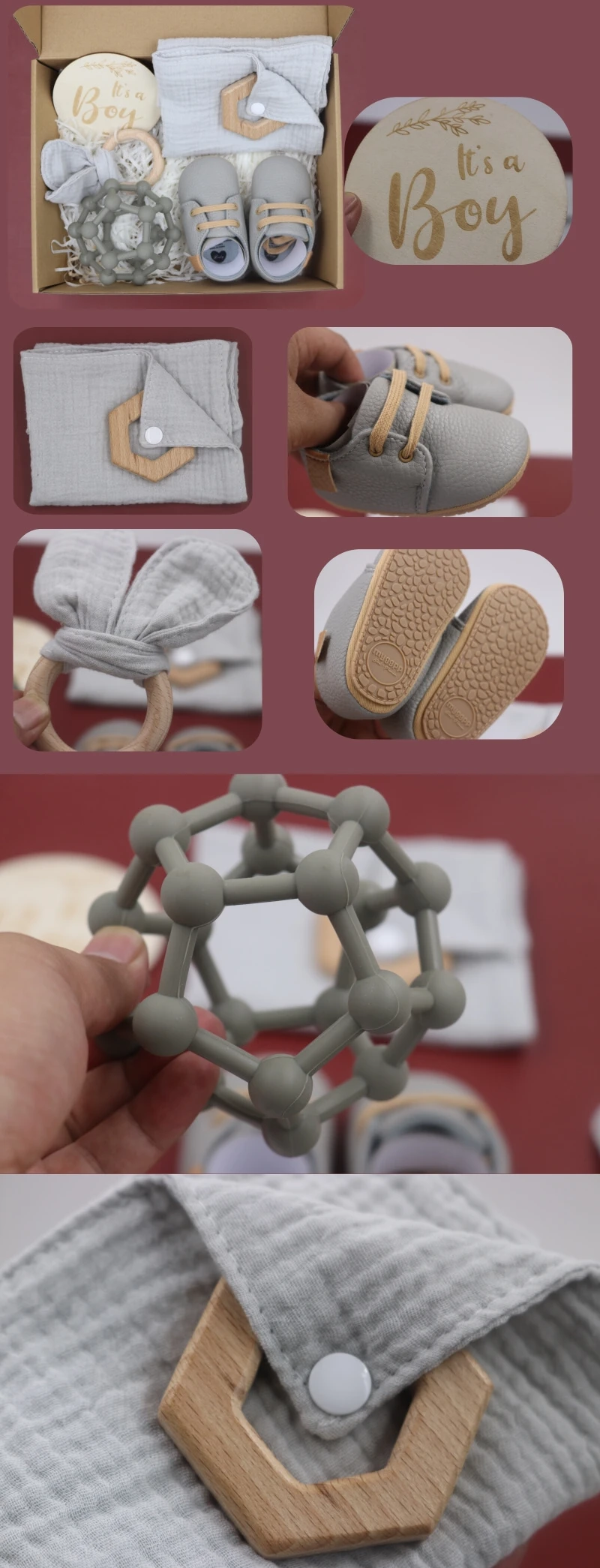 Includes MUSLIN wipes, rabbit ears teether, shoes, gene ball and growth trail card.