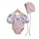 Fish scale print, ruffled hem, long sleeve jumpsuit swimsuit, sweet and cute summer bikini beachwear for baby girls.