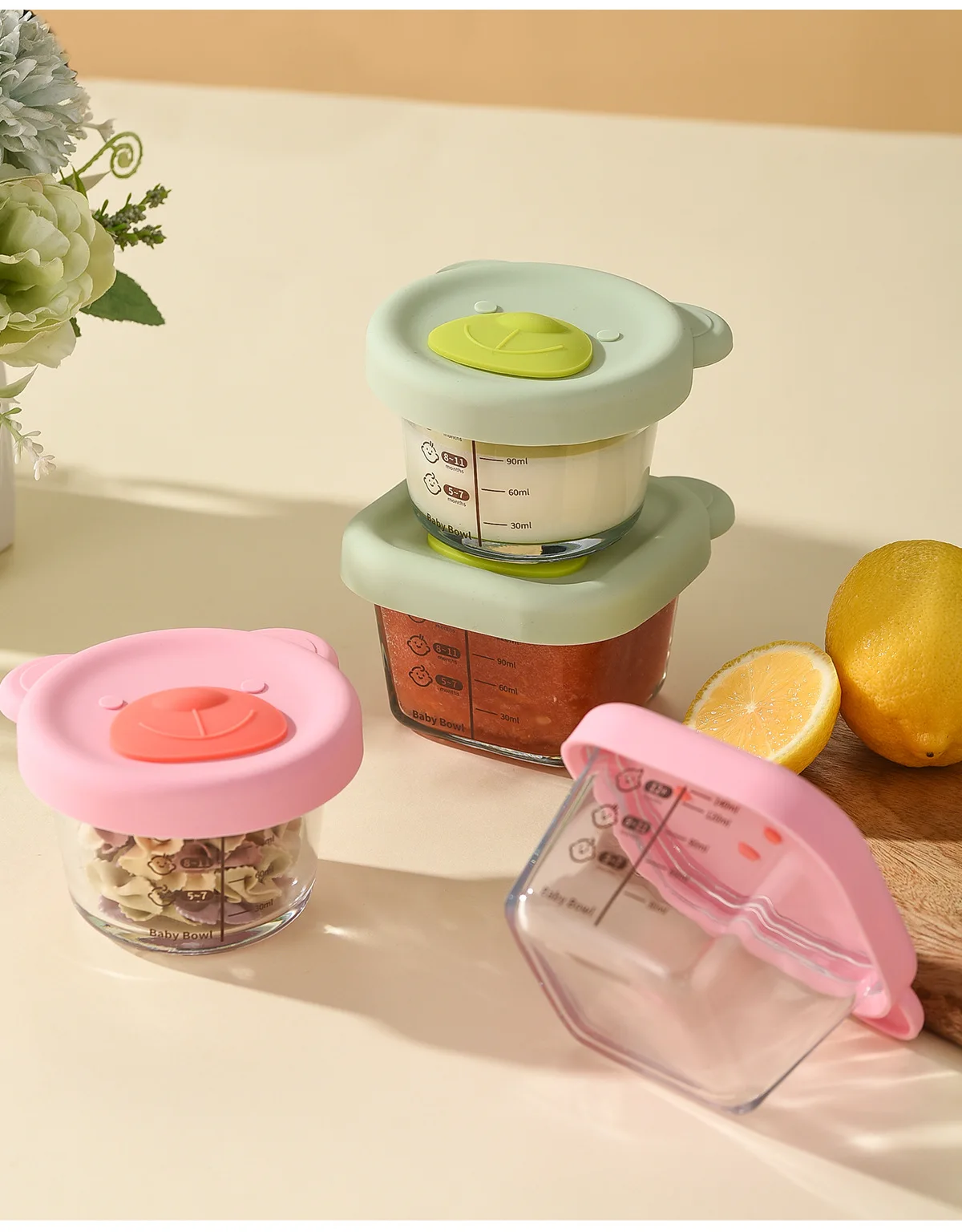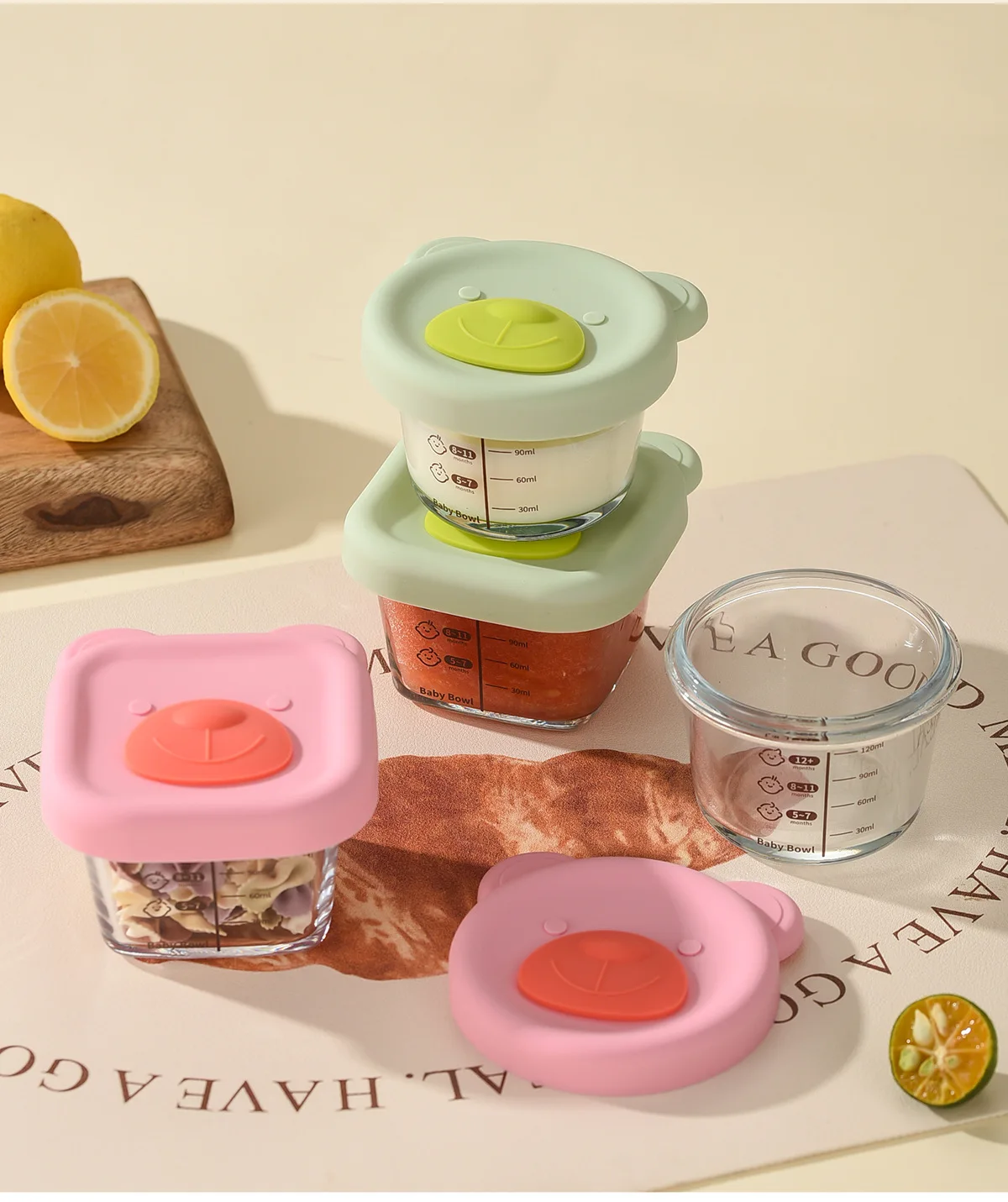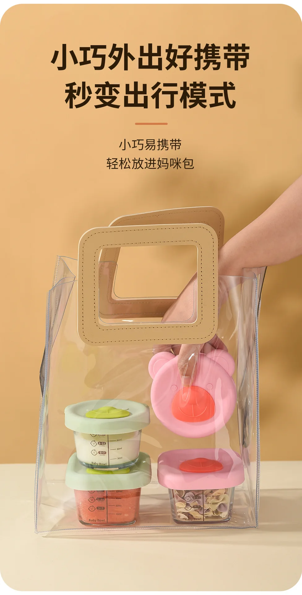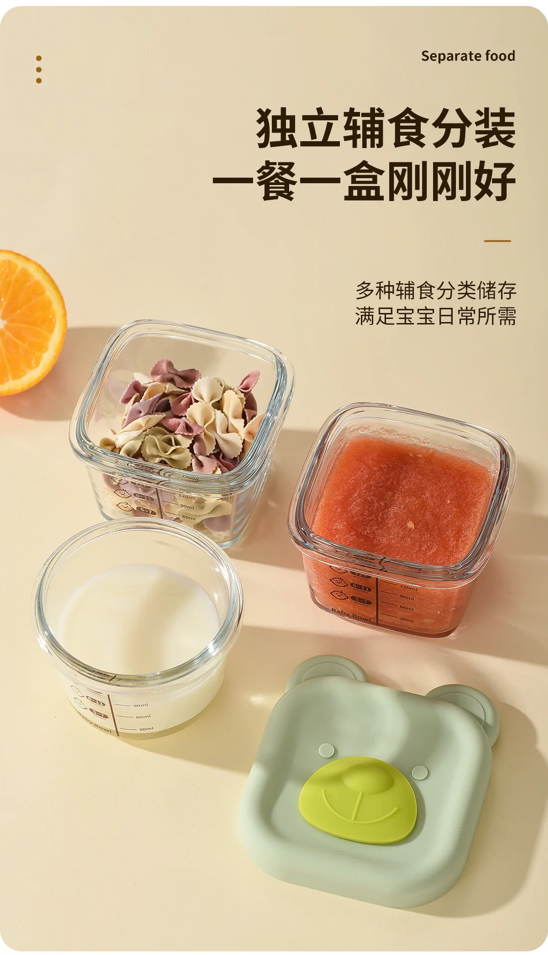 Baby food mold portable seal storage box baby glass solid food bowl bear silicone cover steamer crisper