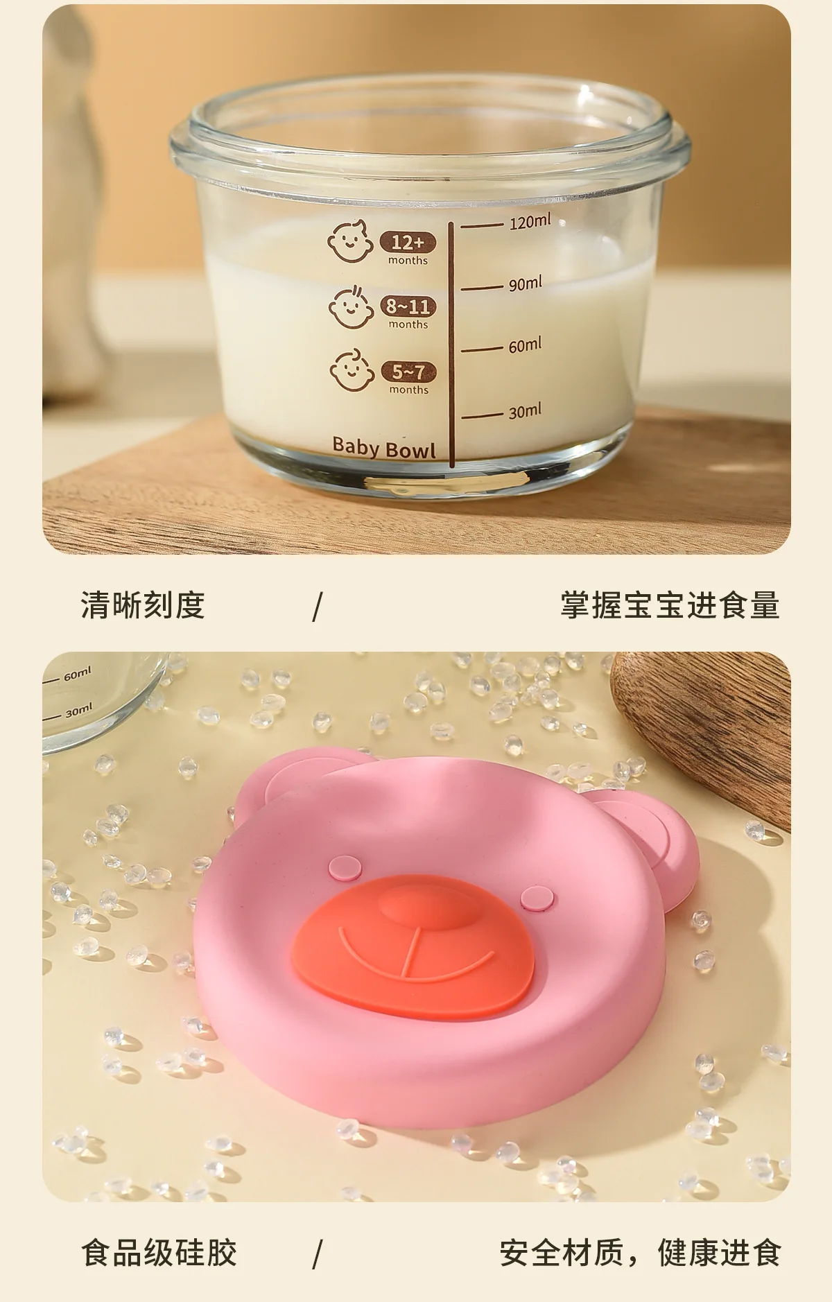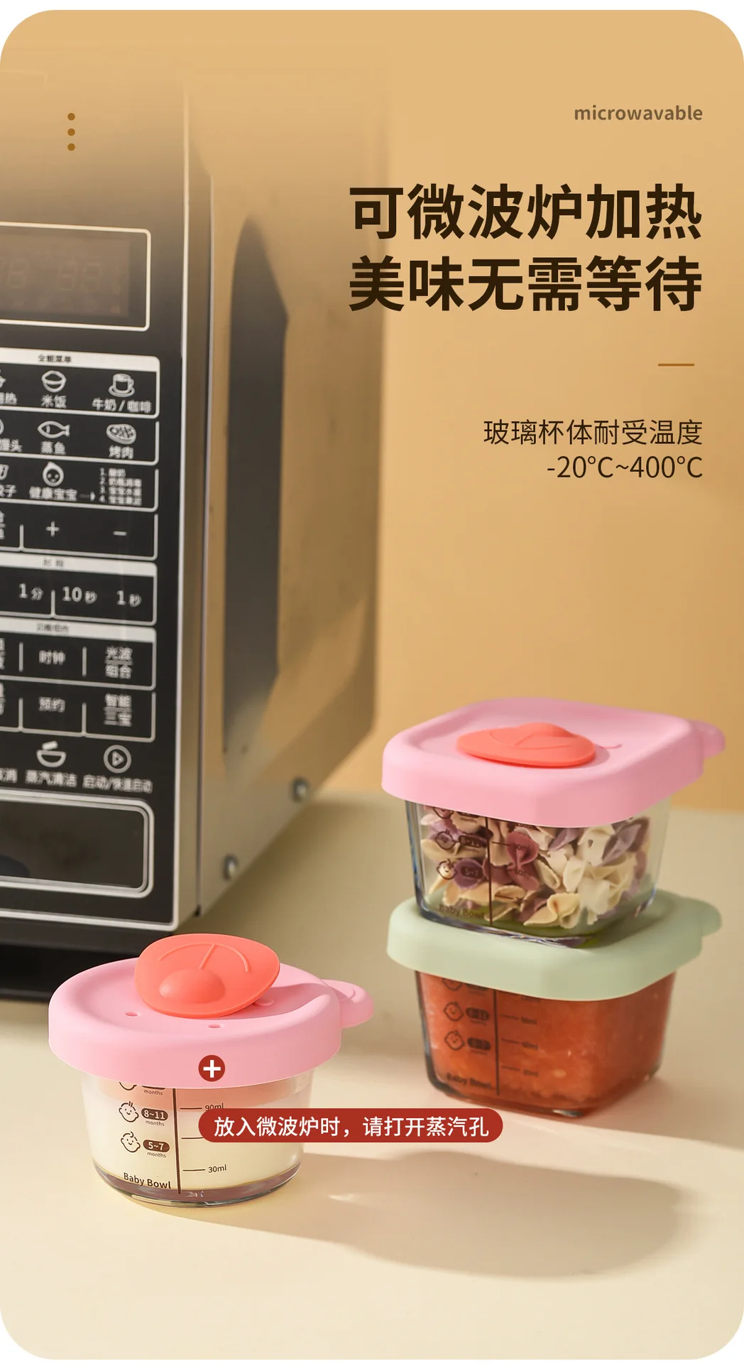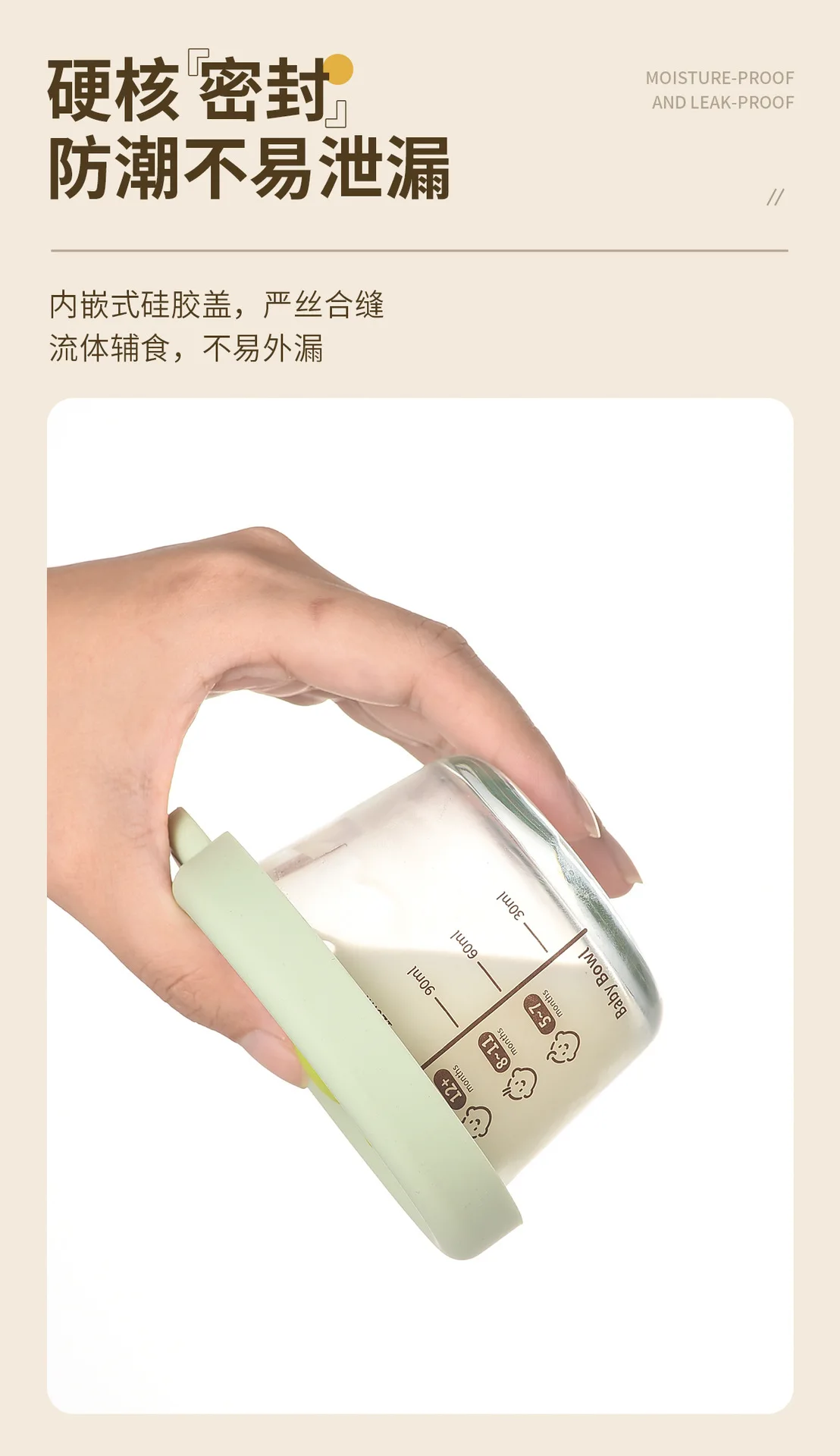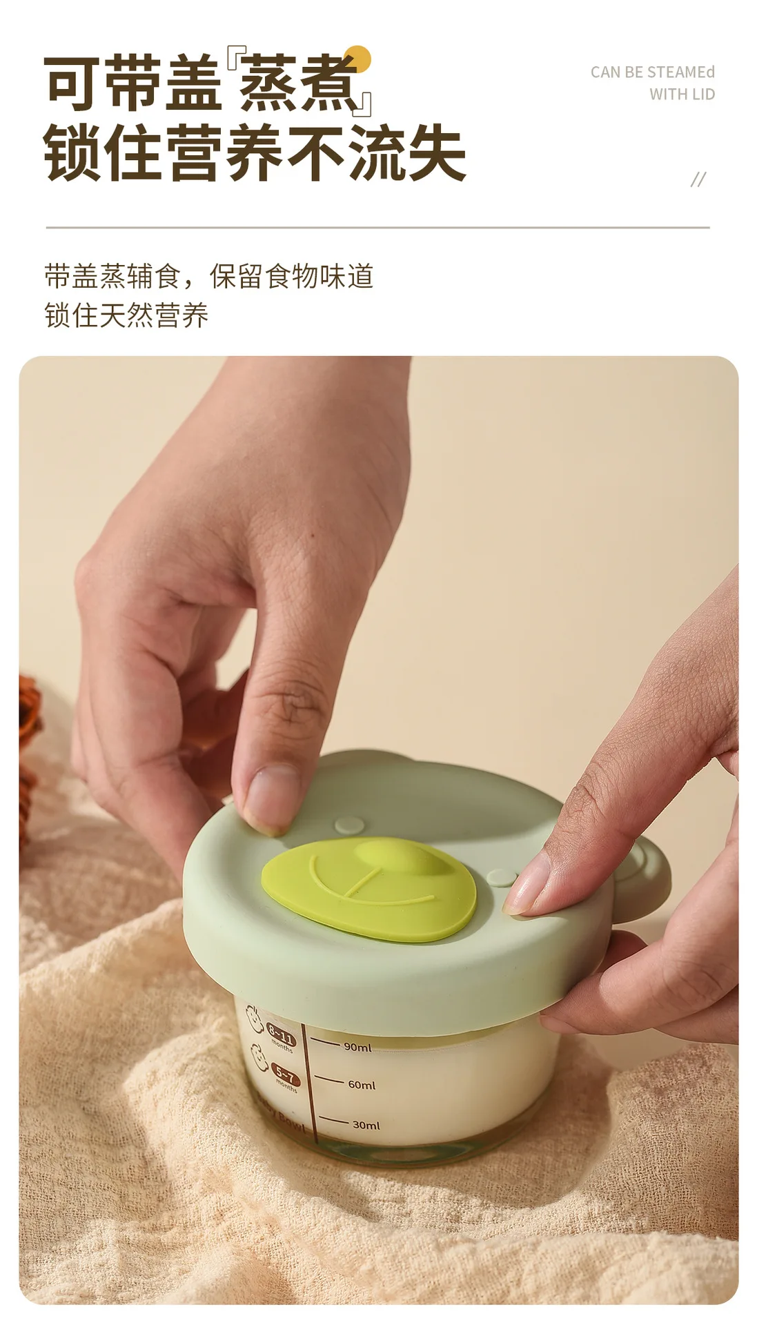 Baby food mold portable seal storage box baby glass solid food bowl bear silicone cover steamer crisper