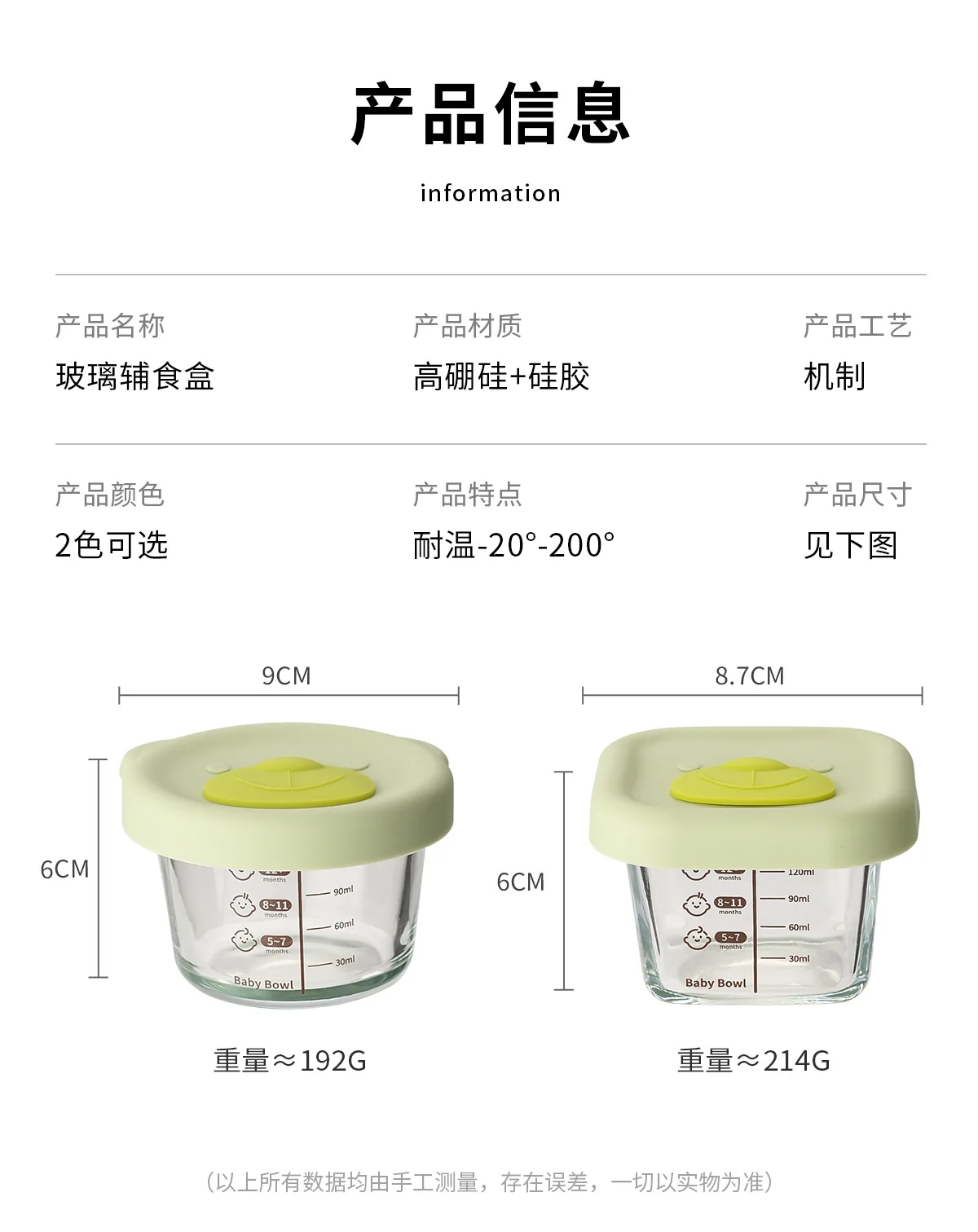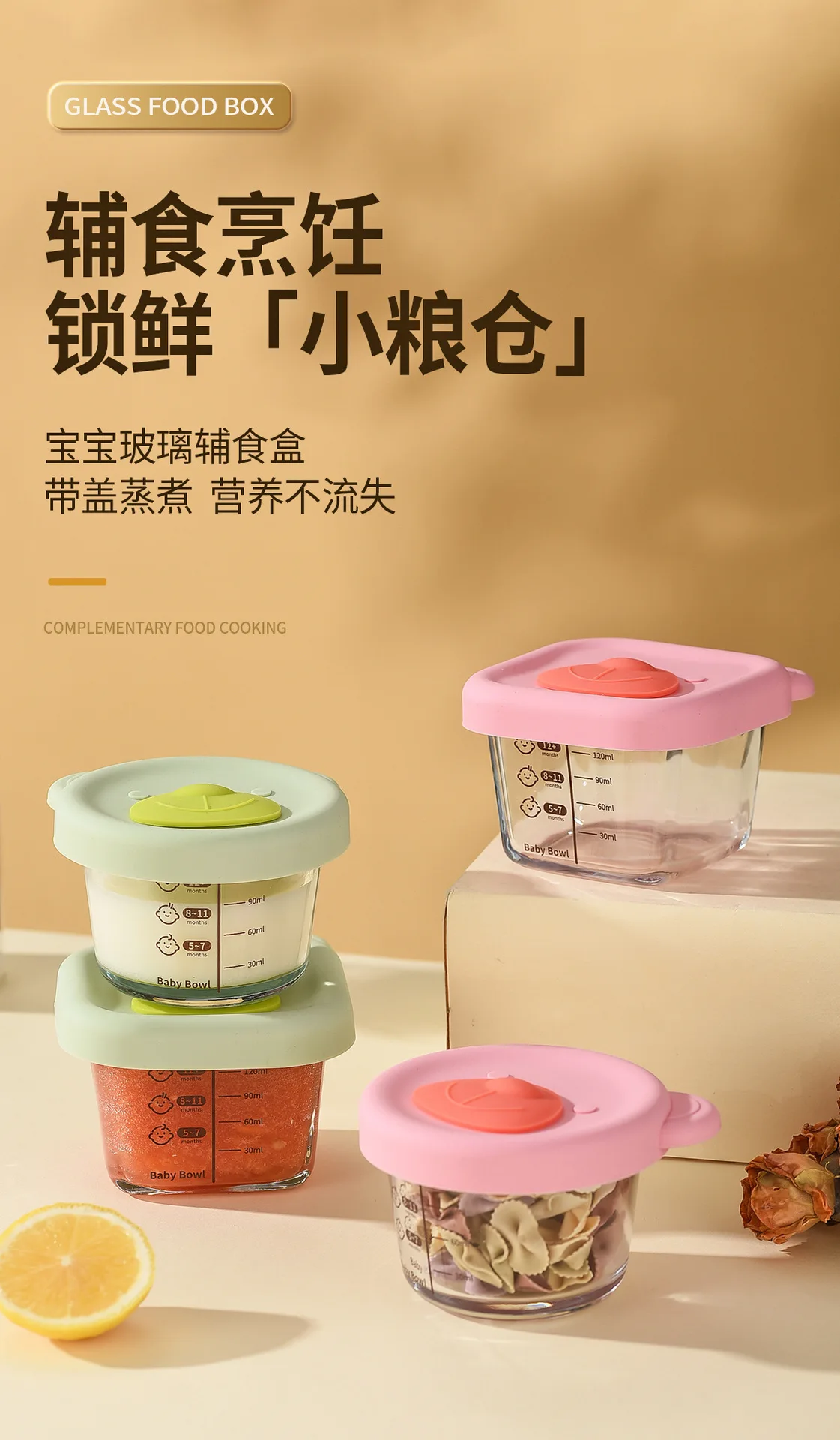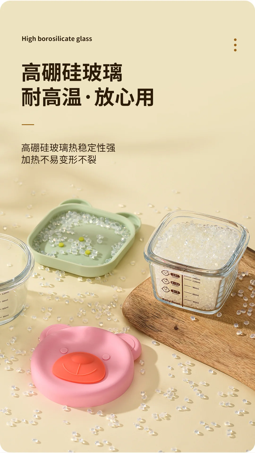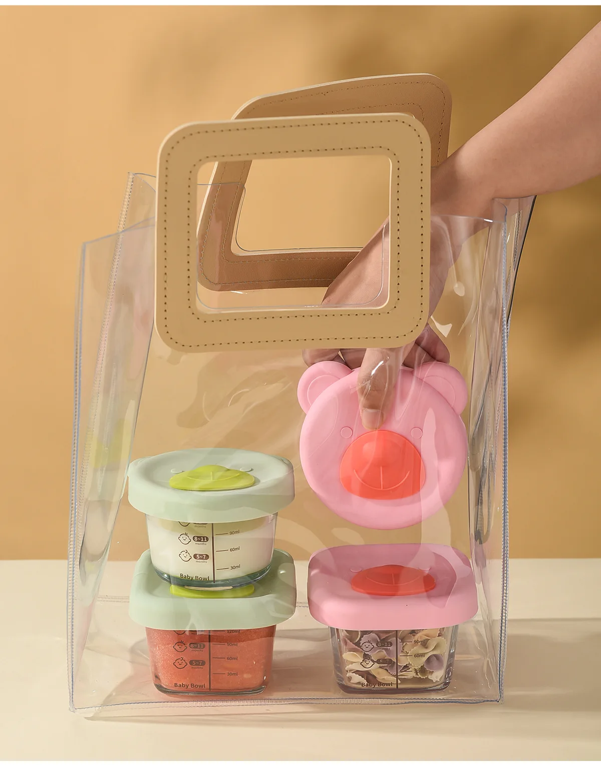 Baby food mold portable seal storage box baby glass solid food bowl bear silicone cover steamer crisper