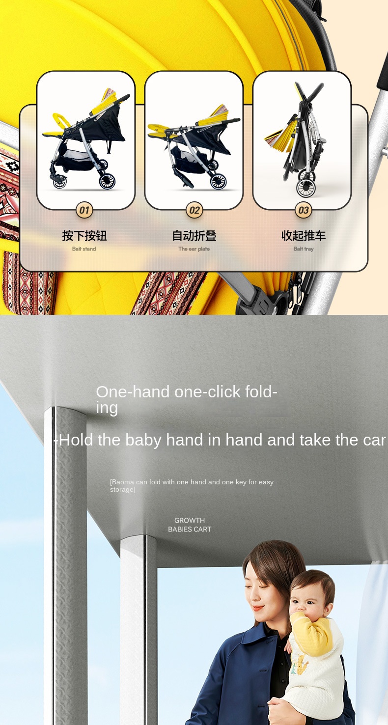Baby Stroller 3-in-1 Fashion Four Seasons Universal Four Wheel Shock Absorber Umbrella Bi-directional Folding Baby Stroller