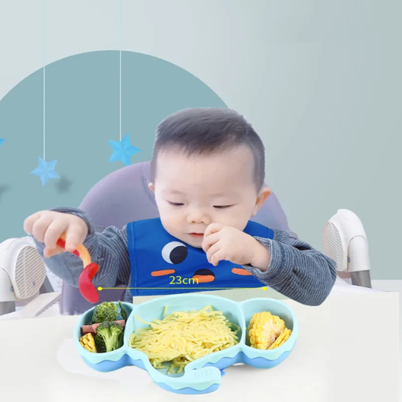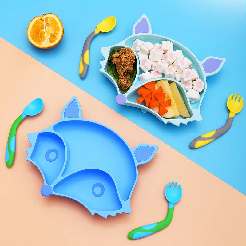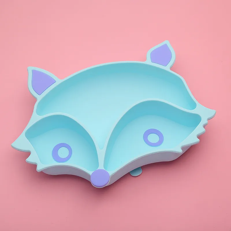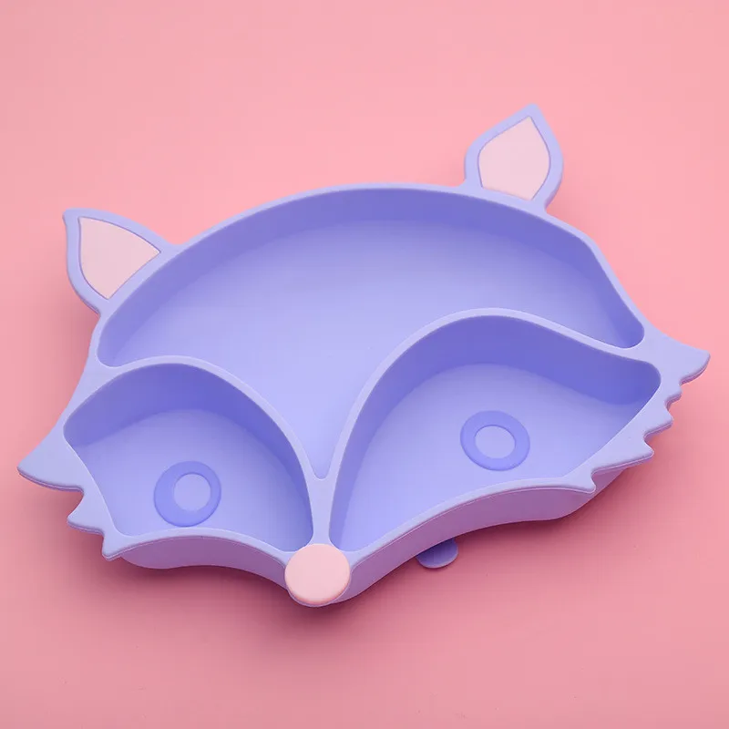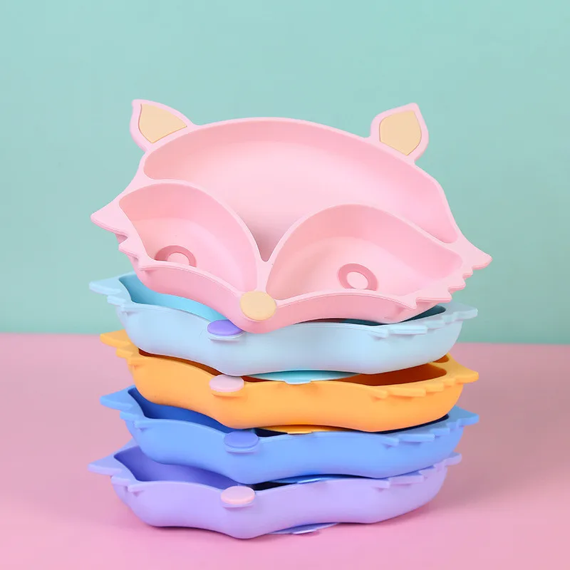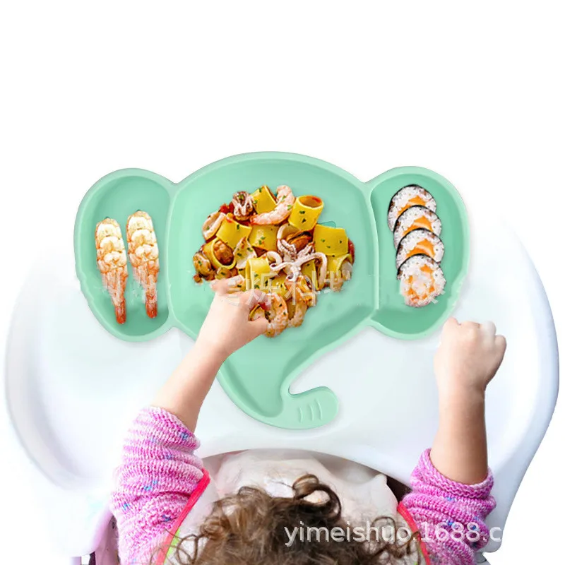 Children's silicone tableware, baby silicone suction cups, cartoon elephant, fox compartment food tray